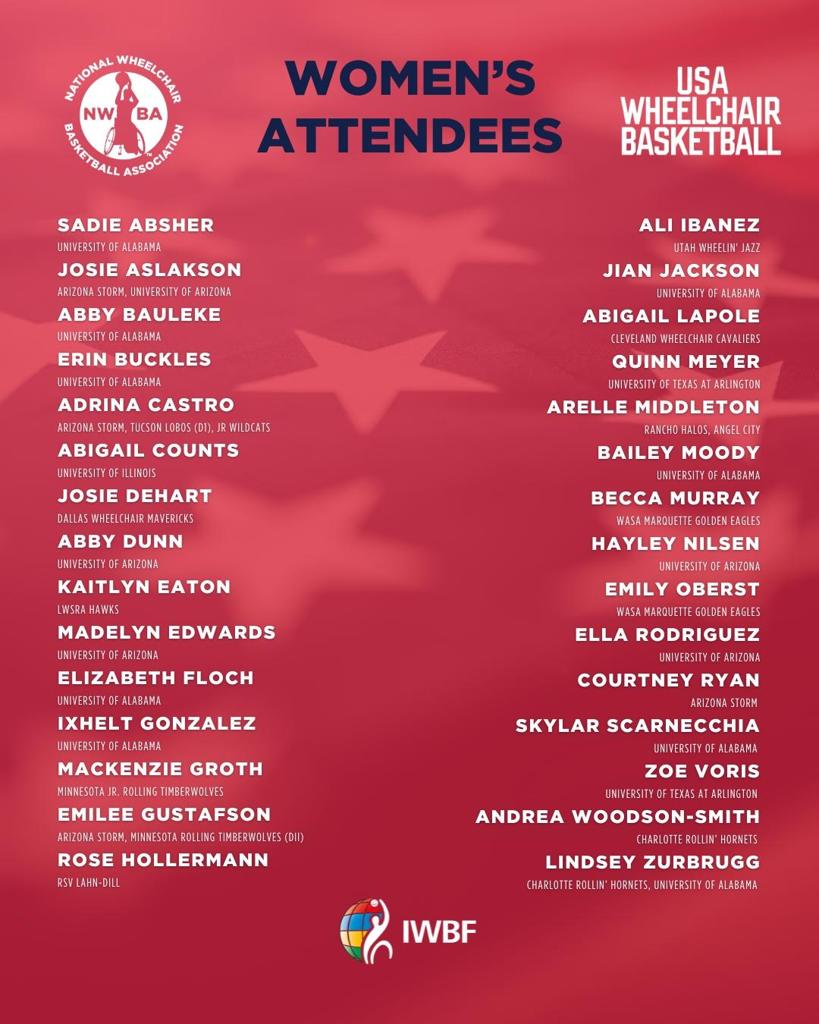 The following pool of 30 athletes will attend the 2026 USA Women’s Wheelchair Basketball Try-Out Camp: